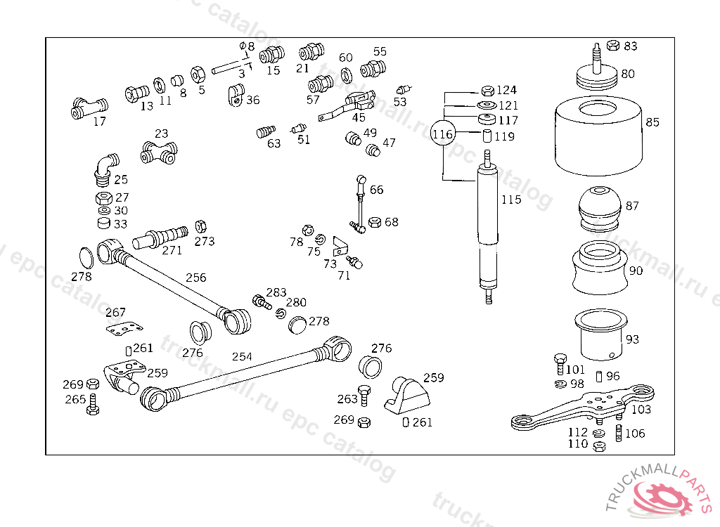 SHOCK ABSORBER , FOR USE WITH MERCEDES-BENZ BODY FIRST EXHAUST STOCK OF OLD PARTS UP TO IDENT NO. 045242, Replaced By: A3573260100