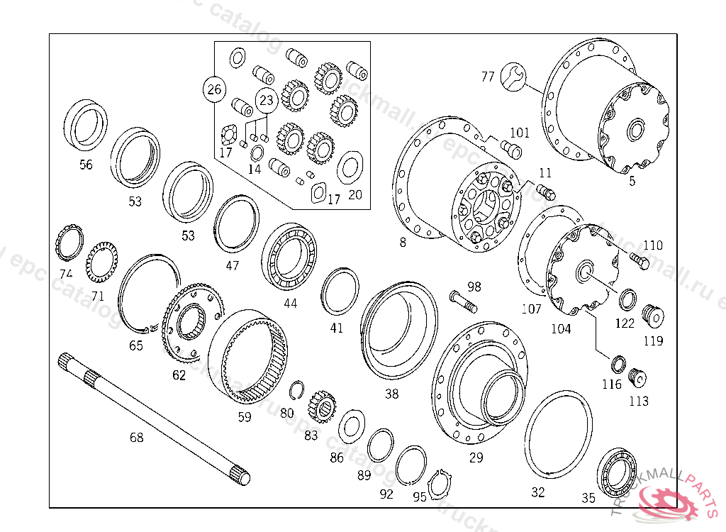 7. 600 WHEEL BEARINGS,PLANETARY GEAR TRAIN WITH AXLE SHAFTS