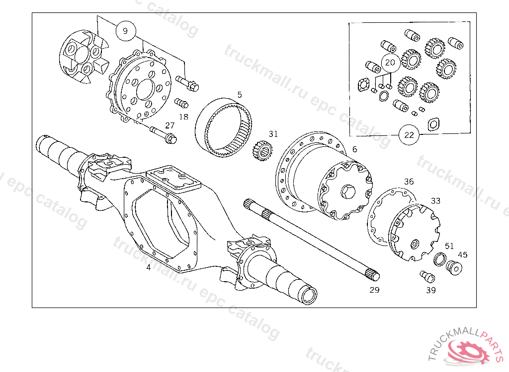 35 REAR AXLE - 600 WHEEL BEARINGS,PLANETARY GEAR TRAIN WITH AXLE SHAFTS