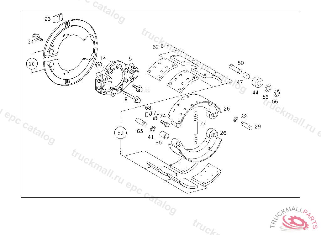 LOCK BRAKE SHOE TO BRAKE ANCHOR PLATE, USED WITH HYDRAULIC BRAKE,345.000-008,021,024,025,033 UP TO IDENT NO. FB588185 UP TO CHASSIS FB588185,FROM CHASSIS FB588186,SEE SPARE PARTS LIST 743.0