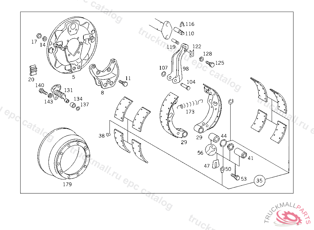 PIN BRAKE SHAFT TO THRUST SHACKLE, 029312 UP TO CHASSIS 910369 ALSO INSTALLED ON 500001-501414,FROM CHASSIS 910370 AND 501415-599999 SEE SPARE PARTS LIST 744.3