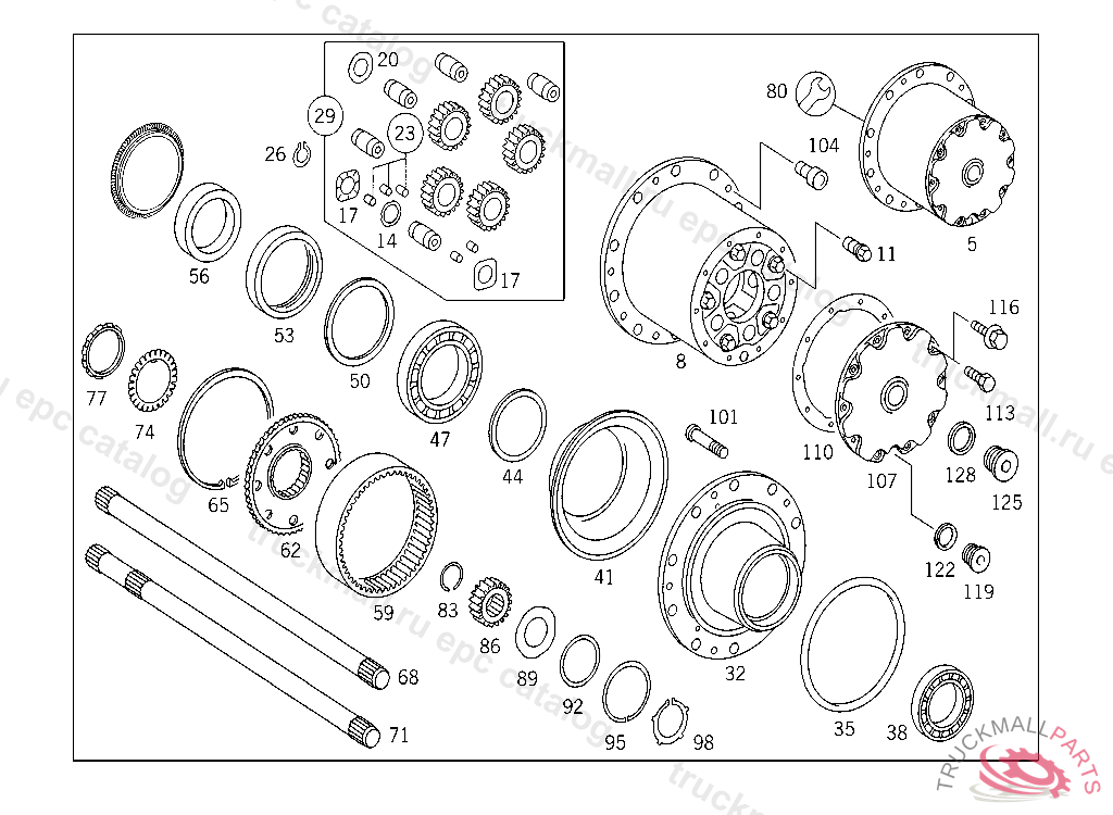 7. 600 WHEEL BEARINGS,PLANETARY GEAR TRAIN WITH AXLE SHAFTS