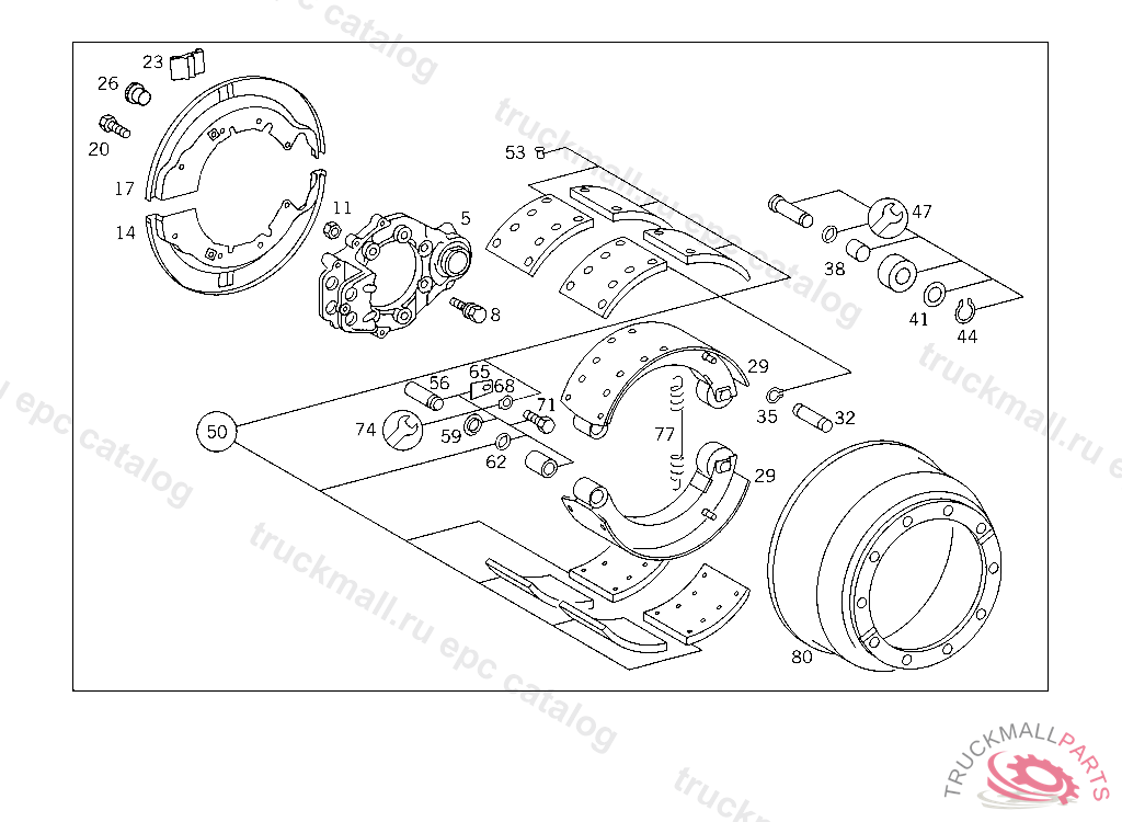 BRAKE SHOE , FIRST EXHAUST STOCK OF OLD PARTS UP TO FRONT AXLE E 128437, Replaced By: A6204200219