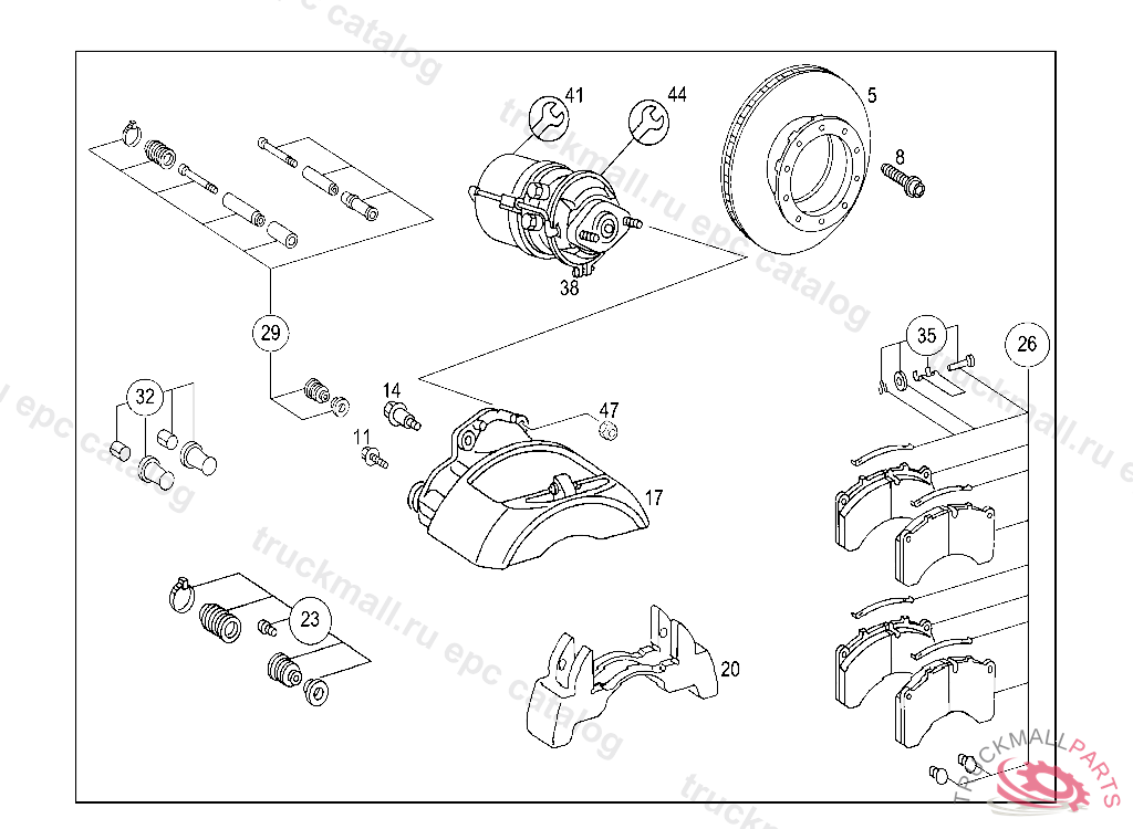 CALIPER LEFT, WITHOUT BRAKE ANCHOR AND BRAKE LINING KNORR