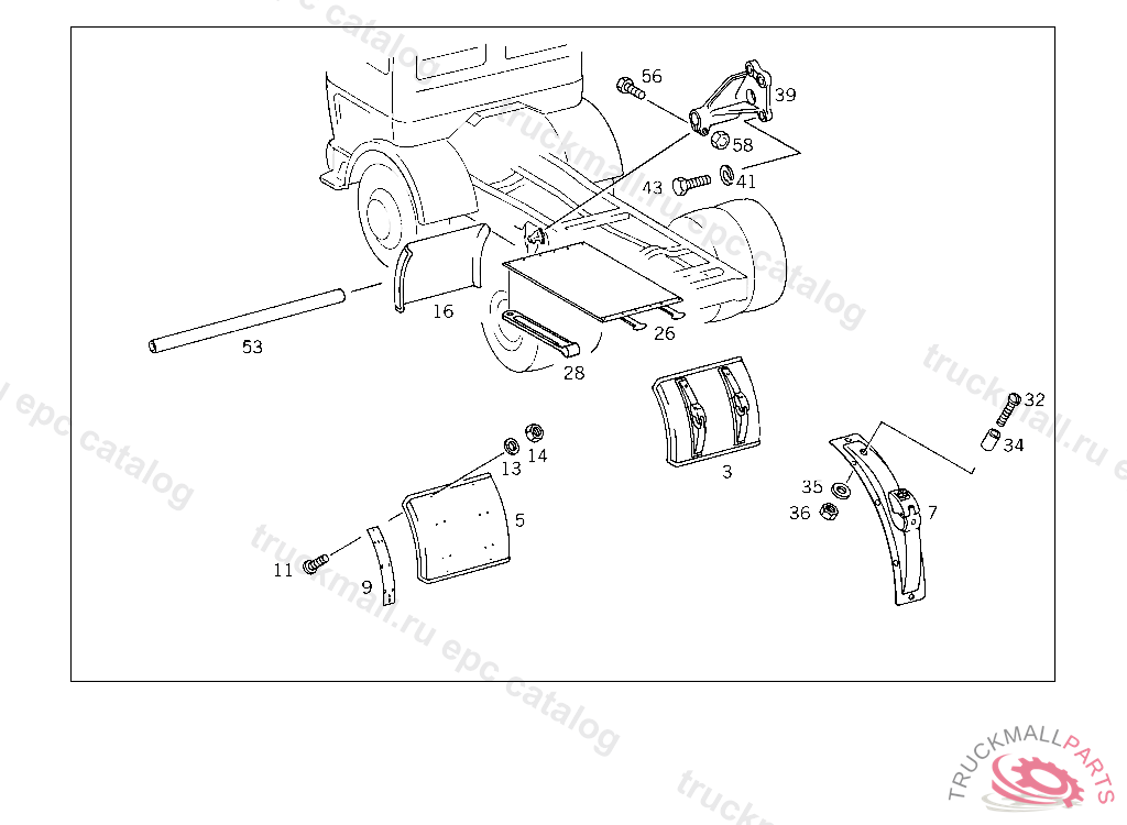 BEARING BRACKET TAIL LAMP AND FENDER,RIGHT,K 164363