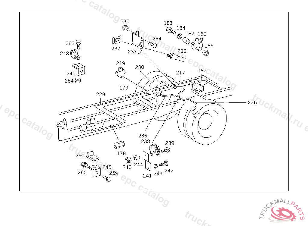 LINE FROM DISTRIBUTOR TO BRAKE HOSE ON REAR AXLE 1100 MM