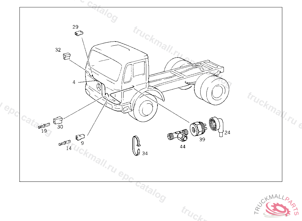 PIN BUSHING HOUSING. PLUG HOUSING FROM CHASSIS/CAB CONNECTION POINT TO TACHOGRAPH