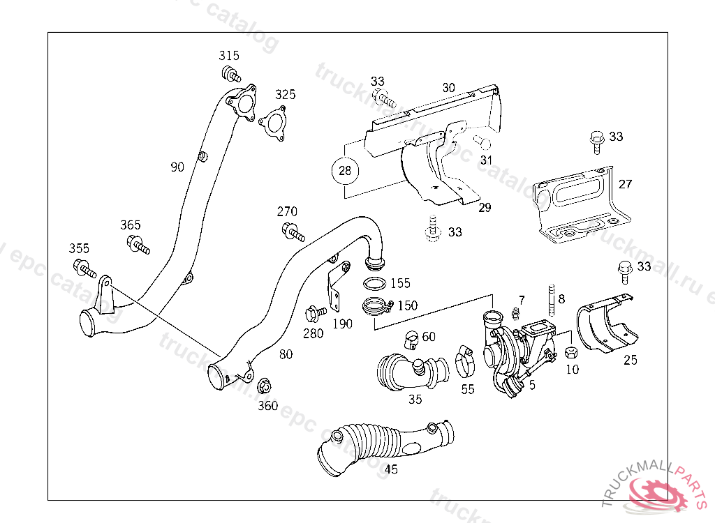 TURBOCHARGERFA. BORGWARNER, DUE TO CHANGES IN THE PERFORMANCE MAP OF THE MR/PLD CONTROL UNIT,TURBO DAMAGES MAY OCCUR THAT ARE INITIALLY NOTICEABLE BY MEAN S OF WHISTLING NOISES OR BLACK SMOKE. REMEDY: REPLACE TURBOCHARGER. WHEN EXCHANGING THE TURBOCHARGER THE MODIFIED MOLDED HOSE MUST ALSO BE INSTALLED. PART ORDERING NOTES: MODEL 970-976 (ATEGO) 1 X A904096769905 TURBORCHARGER, 1 X A970528088205 MOLDED HOSE, 1 X A9041401909 EXHAUST MANIFOLD (ONLY UP TO ENGINE END NO.66059) WITH MODEL 674,676 (TRUCKS)1 X A904096749905 TURBOCHARGER, 1 X A9041410083 MOLDED HOSE