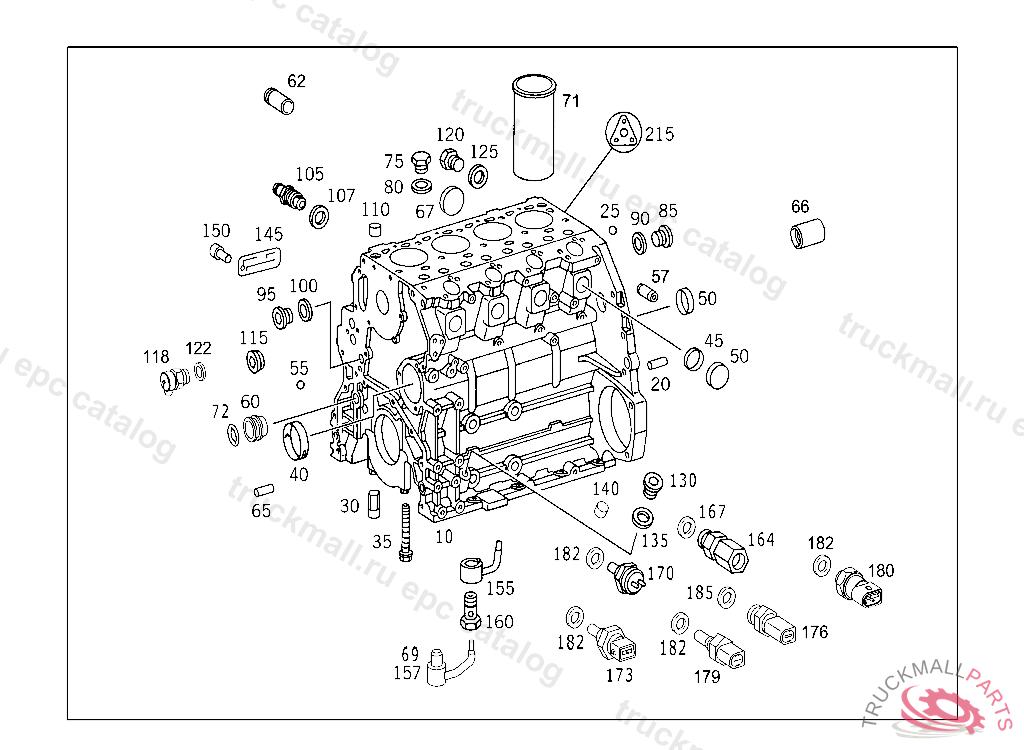 CRANKCASE , UP TO ENGINE 108128 ORDER ADDITIONALLY: 4X INJECTION PUMP, 5X MAIN BEARING PARTS KIT, 1X CYL. HEAD UP TO ENGINE 185256 ORDER ADDITIONALLY: 5X MAIN BEARING PARTS KIT, 1X CYL. HEAD UP TO ENGINE 301570 ORDER ADDITIONALLY: CYLINDERHEAD