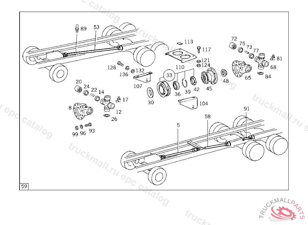 PROPELLER SHAFT FROM REAR AXLE I TO REAR AXLE II 740 MM,5 249277,184 KW (250 PS) 625.0055 322984,184 KW (250 PS) 625.009 PART IS ONLY OR ALSO SUPPLIED AS RECONDITIONED PART