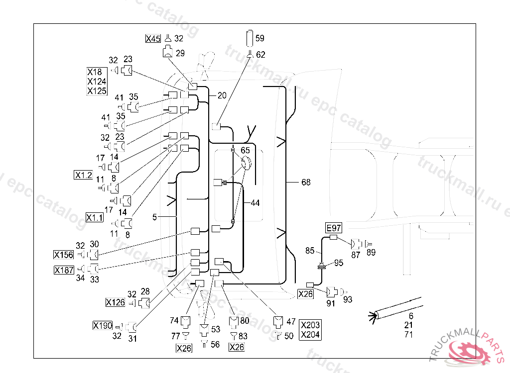 CABLE HARNESS CAB - REAR WALL - CABLE HARNESS GLOBAL COCKPIT, WHEN ORDERING, SPECIFY THE VARIANT NUMBER XVK.. ...... FROM VEDOC STATE IDENT NO. WHEN ORDERING