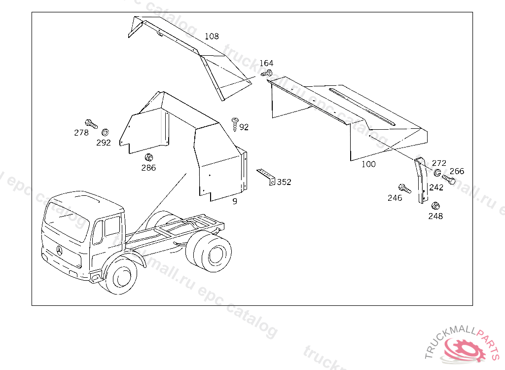 COVER ENGINE COVERING, FOR USE WITH SHORT MERCEDES-BENZ CAB
