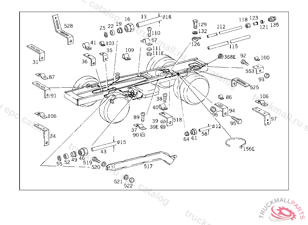 BRACKET BUMPER,RIGHT, 620.415 UP TO CHASSIS 5 014668 620.416 UP TO CHASSIS 5 000515 620.417 UP TO CHASSIS 4 972023