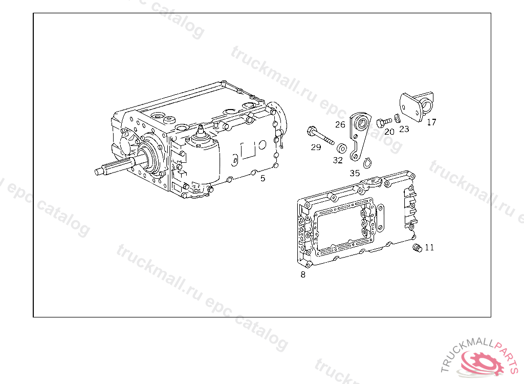 TRANSMISSION AK 6-80(HILL GEAR)1ST SPEED RATIO1:9.0,6TH SPEED RATIO1:1.0, FOR TYPES L-LK-LS 1621/1921 L/LA 1624 FOR COMPONENT PARTS,SEE SPARE PARTS LIST