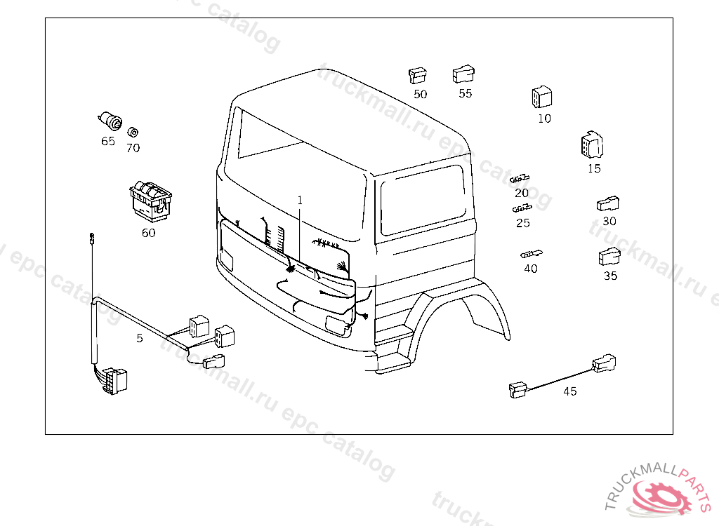 PIN BUSHING HOUSING. PLUG HOUSING FROM CHASSIS/CAB CONNECTION POINT TO TACHOGRAPH