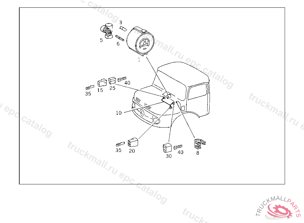 PIN BUSHING HOUSING. PLUG HOUSING FROM CHASSIS/CAB CONNECTION POINT TO TACHOGRAPH