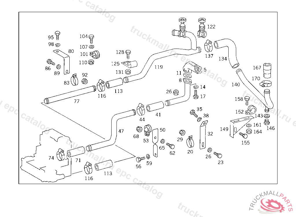 BRACKET COOLING WATER LINE TO ENGINE,RIGHT