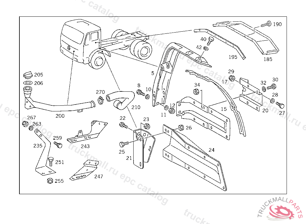 SUPPORT LEFT FENDER, WITH 385.068,069 ON VEHICLES WITH DB-CAB,ONLY ON 385.019 ONLY FOR VEHICLES HAVING NO MERCEDES-BENZ PLATFORM