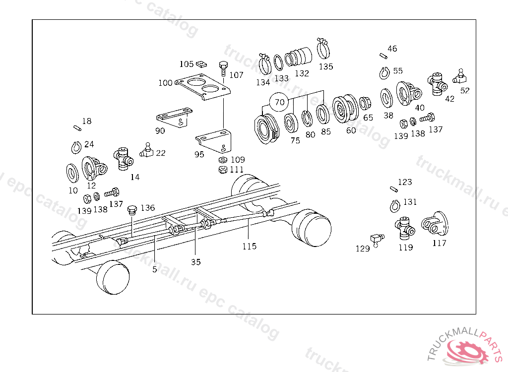PROPELLER SHAFT , BEARING BUSHING O.D., 38 MM, Replaced By: A6744101004, +001A3832820262, +001A3814110145, +001A3839900019