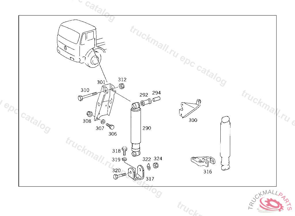 BRACKET RIGHT SHOCK ABSORBER, MODELS 385.068,069 FOR USE WITH MERCEDES-BENZ CAB4 336573