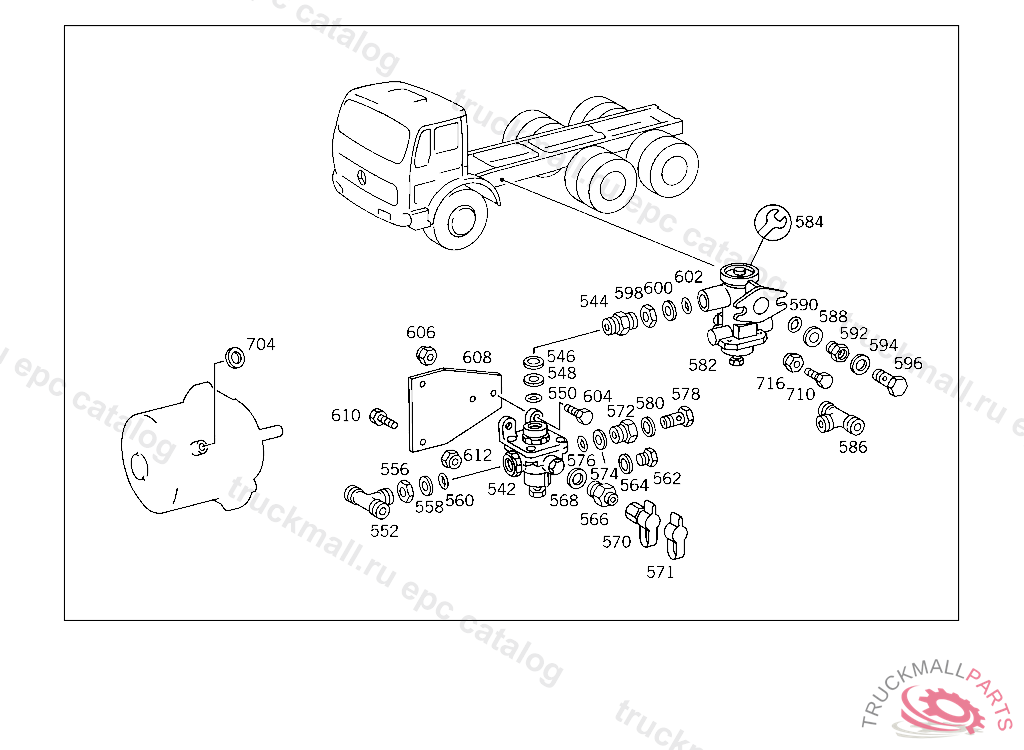 BRAKE CYLINDER , EXHAUST STOCK OF OLD PARTS NUMBER FIRST UP TO CHASSIS 4 847617, Replaced By: A0014317214