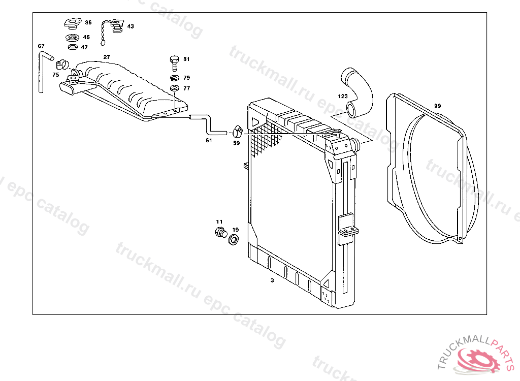 BREATHER PIPE VENTILATION, FROM RADIATOR TO EXPANSION TANK, 415 5 014668 416 5 000515 417 4 972023 FOR USE WITH SHORT MERCEDES-BENZ CAB
