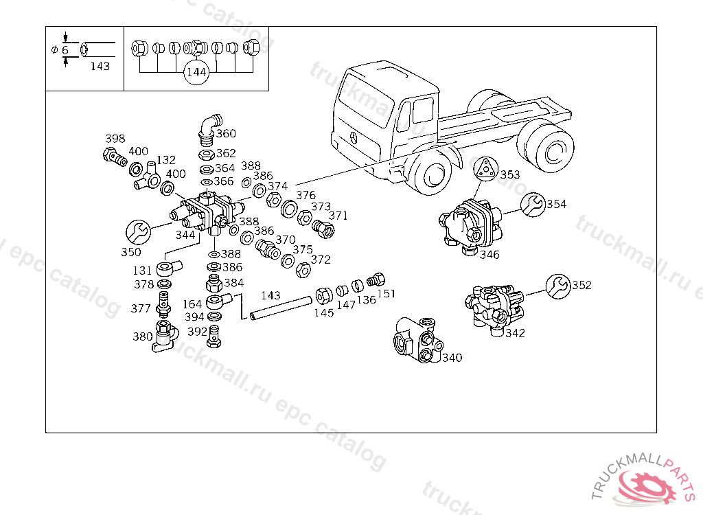 ELBOW FITTING FOUR-CIRCUIT PROTECTIVE VALVE, CONNECTION: "1", 620.415 UP TO CHASSIS 5 014668 620.416 UP TO CHASSIS 5 000515 620.417 UP TO CHASSIS 4 972023