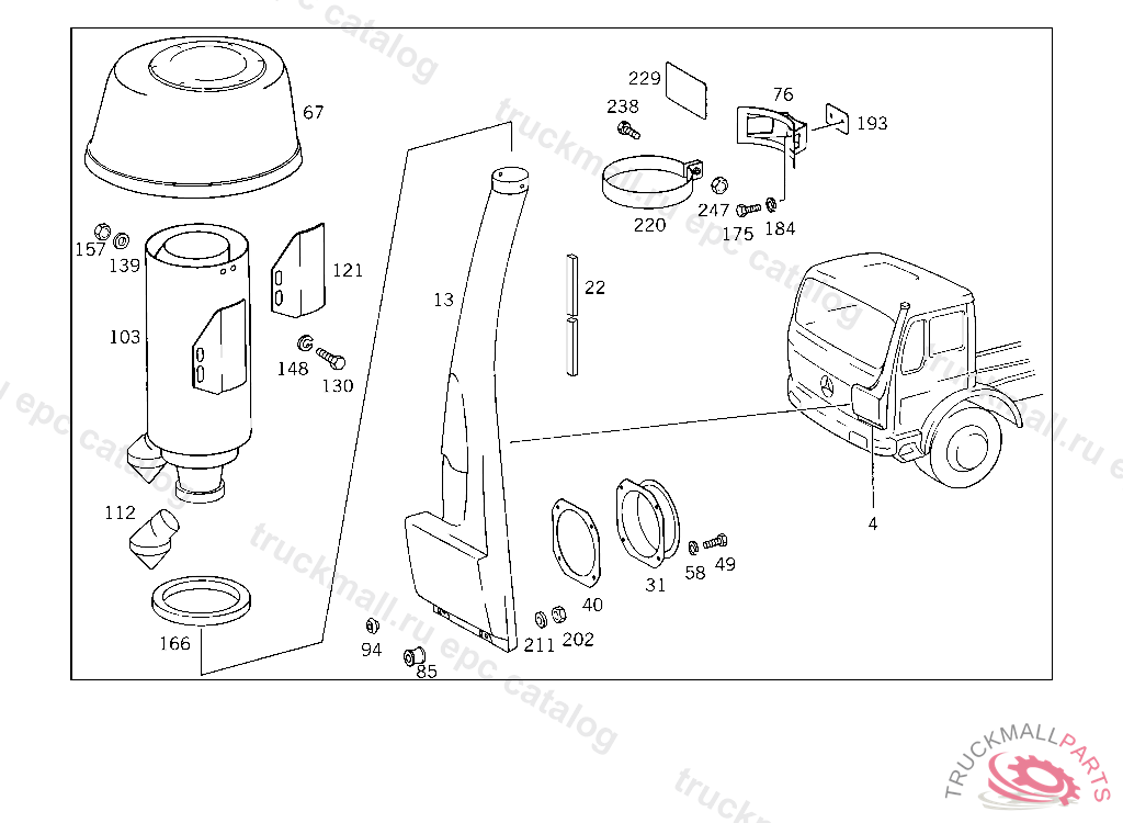BUFFER AIR INTAKE PIPE TO CAB, UP TO IDENT NO.4 872645, FROM IDENT NO. SEE GROUP 83