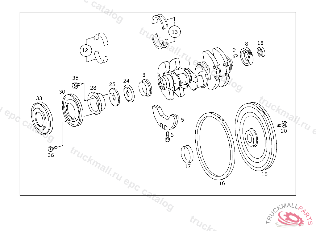 CRANKSHAFT WITH CRANKSHAFT BEARING SHELLS AND CONNECTING ROD BEARING SHELLS,144561
