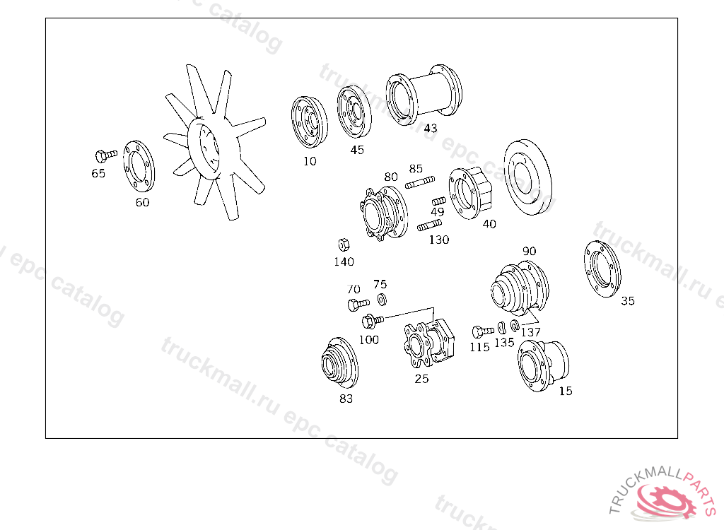 STUD BOLT FAN,INTERMEDIATE PIECE,AND PULLEY TO HUB OR TO DAMPER,RESP.