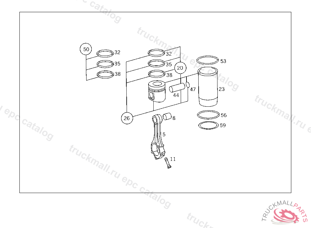 PISTON WITH CYLINDER LINER, UP TO ENGINE 587244,FROM ENGINE 587245,SEE BASIC VERSION