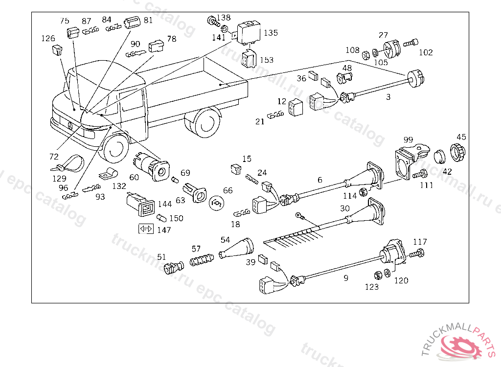 CABLE HARNESS FROM REAR JUNCTION BOX TO TRAILER PLUG SOCKET 24 V
