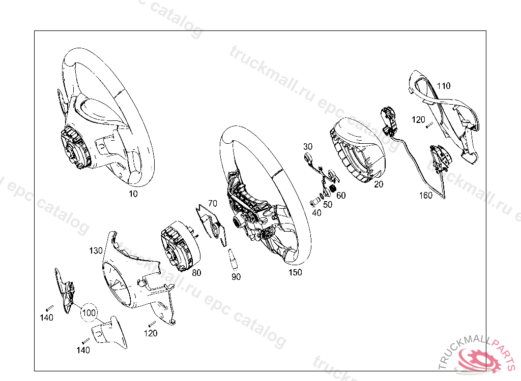 TWO-SPOKE STEERING WHEEL COMPLETE, K 50769020110701801 NO LONGER AVAILABLE, ORDER INDIVIDUAL PARTS CR4A015 QFT451A4500 MARS BLACK