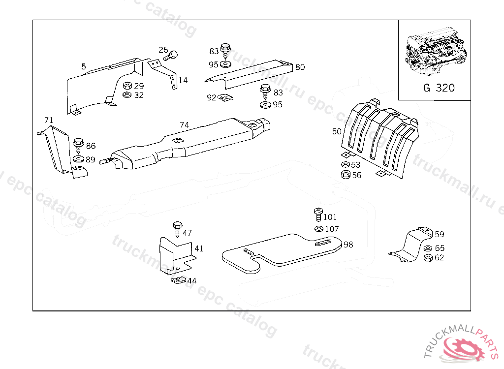 SCREENING REAR EXHAUST SYSTEM G 320 3.6