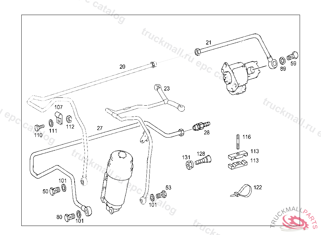 CLAMP DELIVERY AND SUCTION LINES TO ENGINE, FRONT