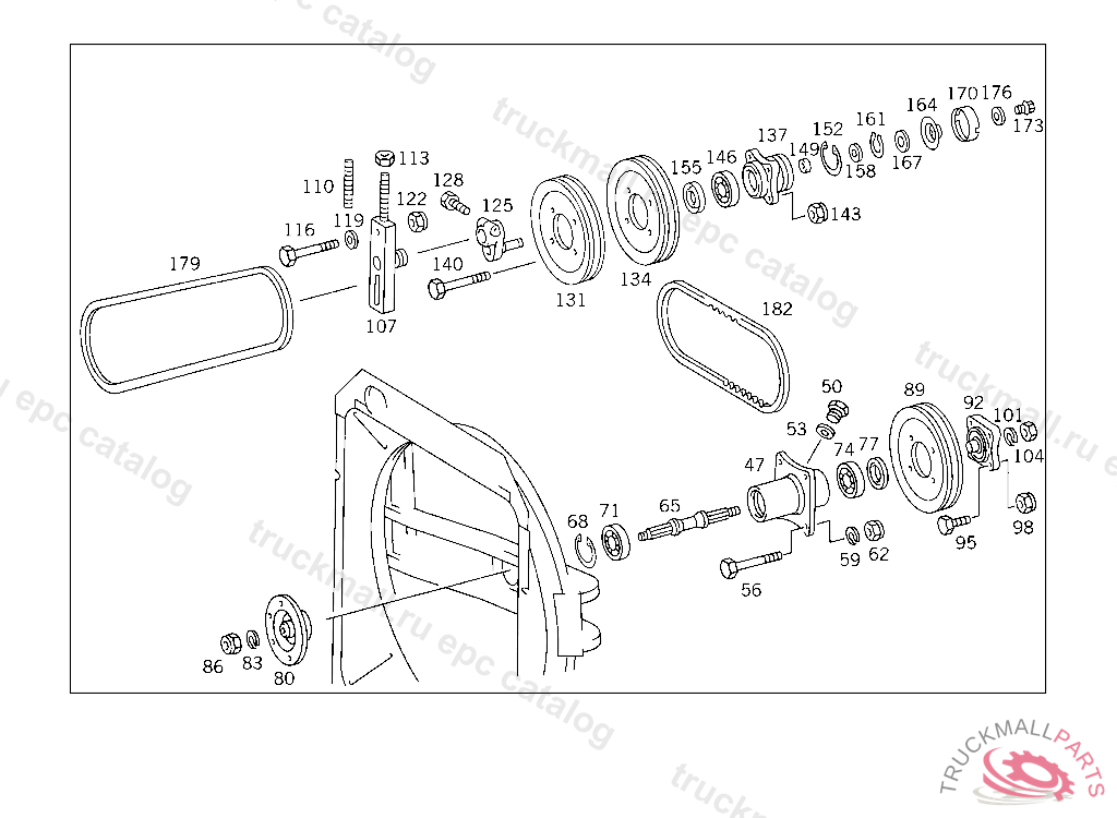 V-BELT FROM VIBRATION DAMPER TO TIGHTENER PULLEY 12.5X1950 MM,000164