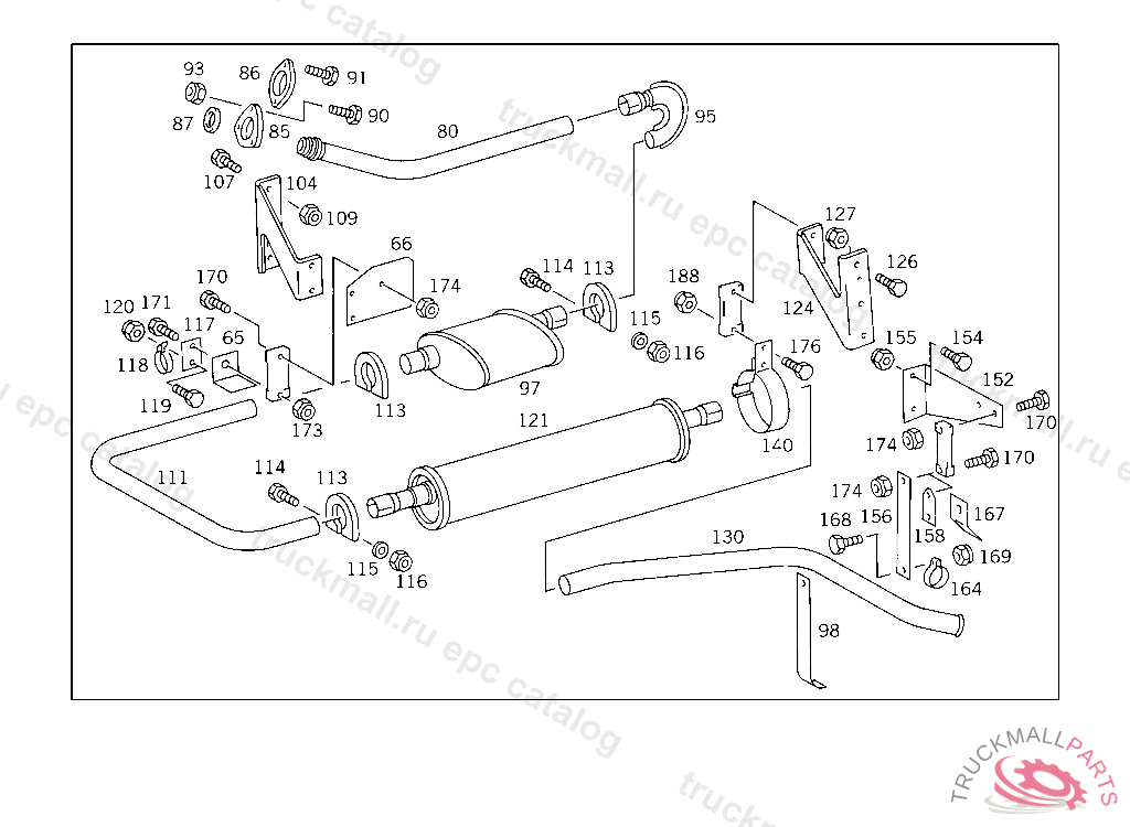 EXHAUST MUFFLER (MAIN MUFFLER), 309.0 FROM CHASSIS 184087-556499,EXCEPT FOR MODEL 050 FROM CHASSIS 192298-556499, 309.1 FROM CHASSIS 182066-556499