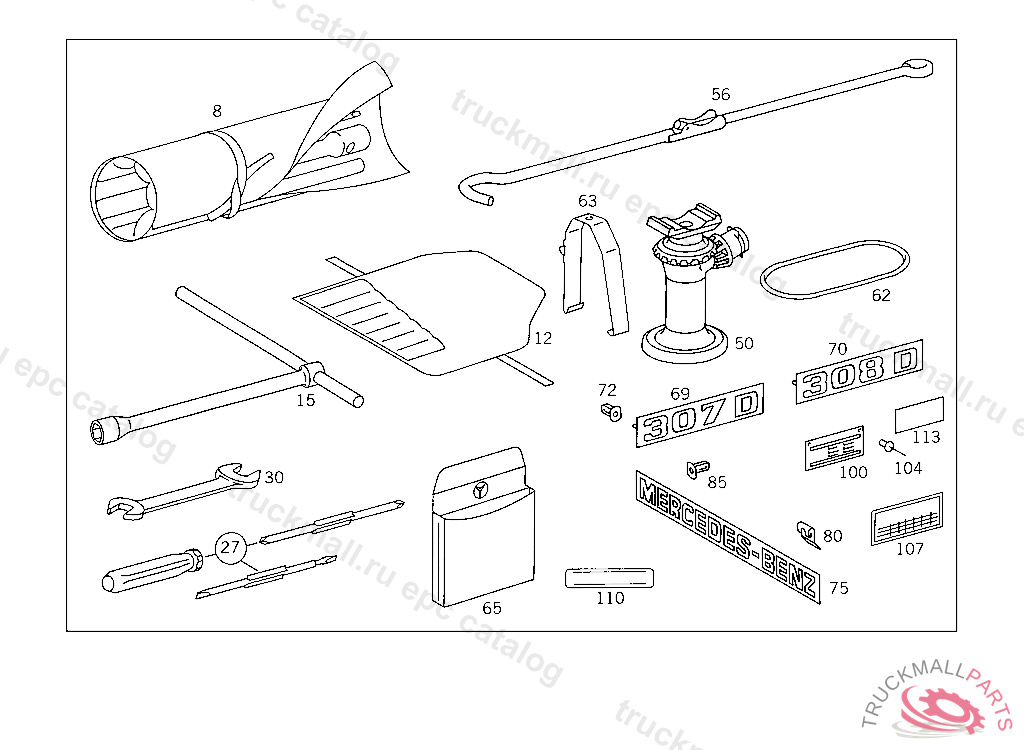 TYPE DESIGNATION307 D, UP TO IDENT NO. 941505 EXCEPT FOR 899081-941503 ONLY WITH OM601/OM602 ENGINE P 000001
