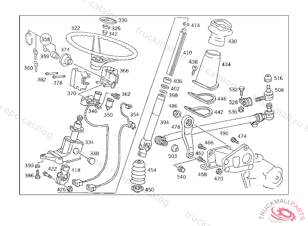 STEERING SHAFTLEMFOERDER, USED WITH SHORT MERCEDES-BENZ CAB