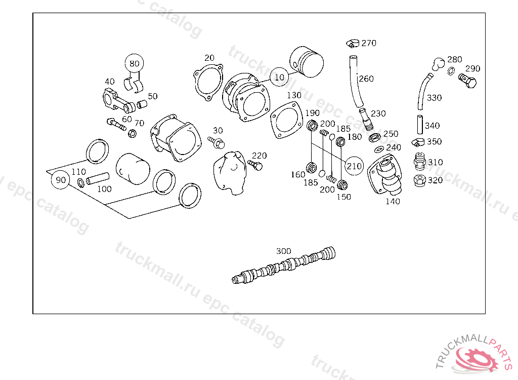 CAMSHAFT WITH INJECTION PUMP MOUNTED INJECTION TIMING DEVICE,LIFTING PIN WIDTH: 28 MM, IN THE CASE OF CAMSHAFT-DRIVEN AIR COMPRESSOR,ALSO ORDER: 352 130 04 16 CONNECTING ROD,352 131 25 33 PARTS KITBEARING SHELLS UP TO ENGINE 283201 YEAR OF MANUFACTURE 1978