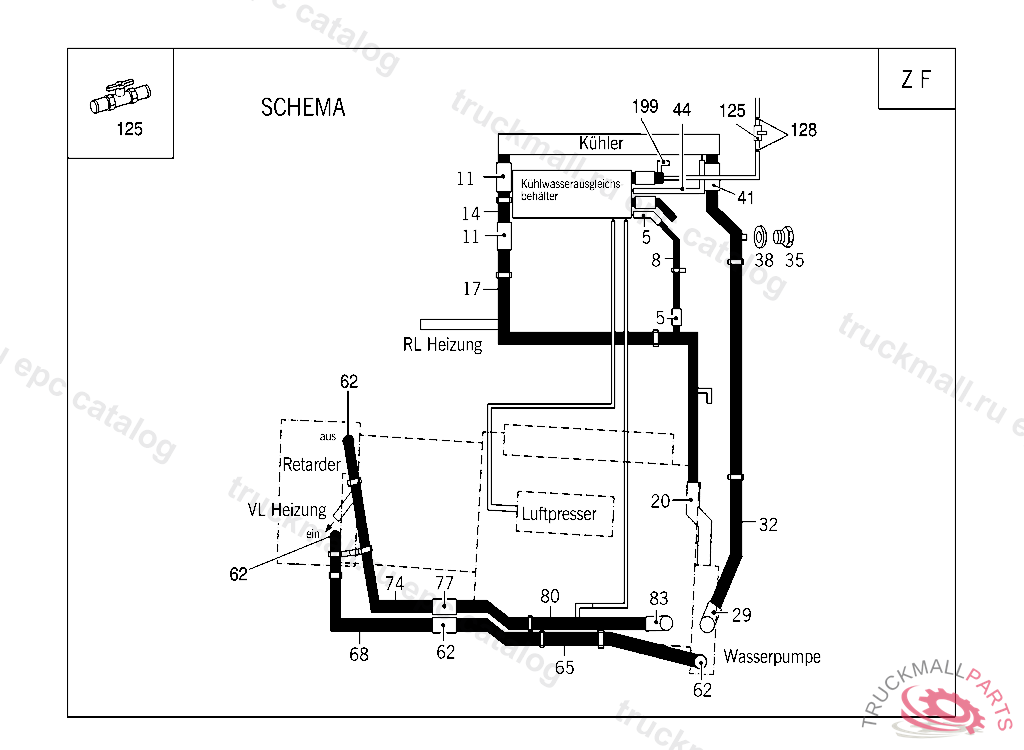 COOLING WATER PIPE FEED, FROM ENGINE TO RETARDER