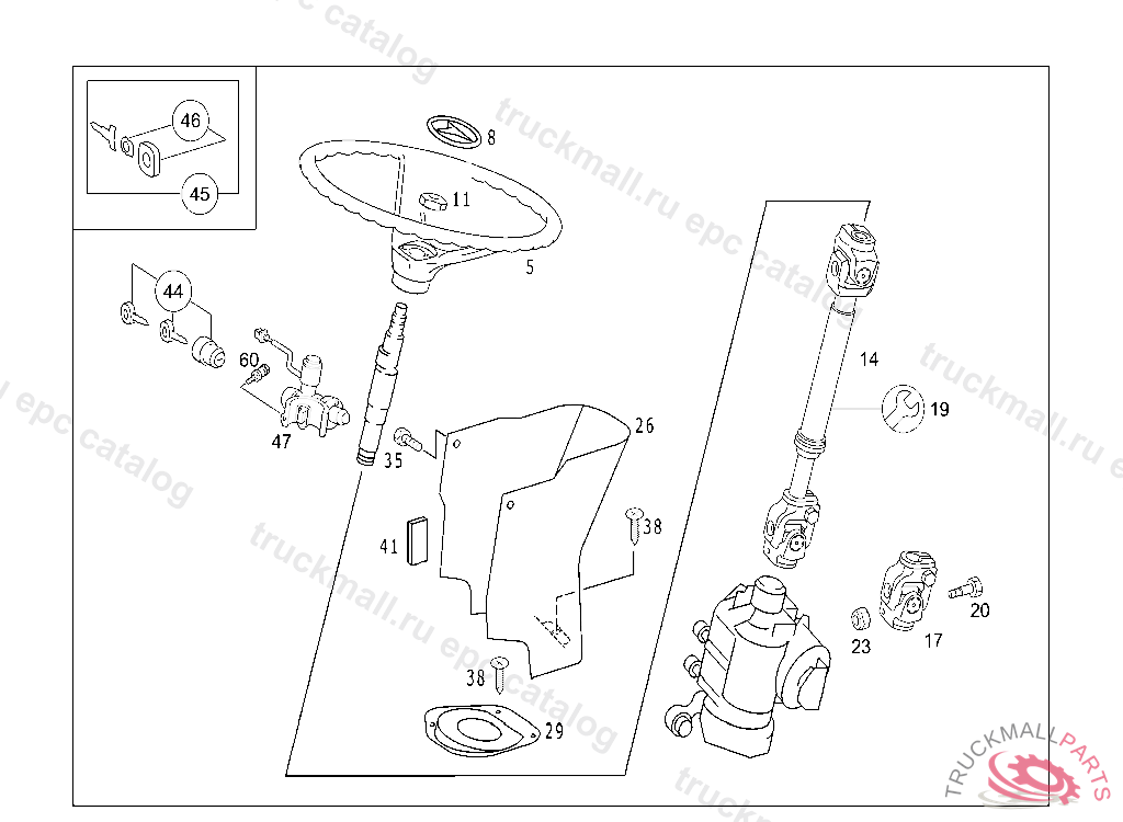 46 STEERING - 330 STEERING WHEEL,STEERING SHAFT,STEERING COLUMN BRACKET AND COVERING IL. 1