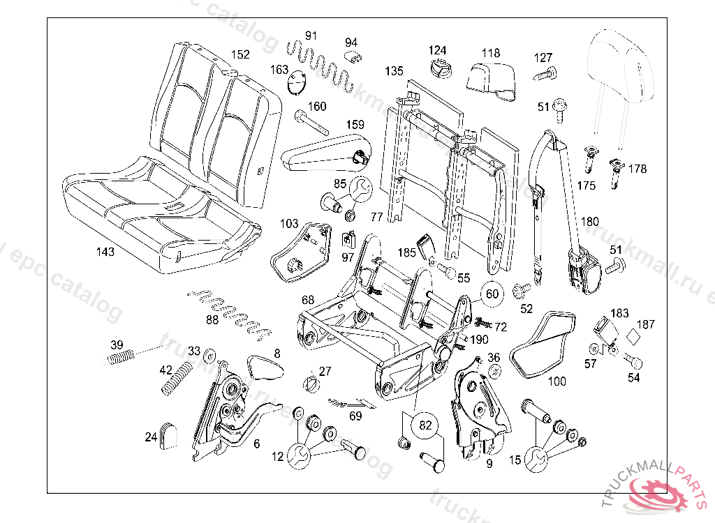 SEAT FRAMEWORK , 29703920070503 46801820080718 PLEASE ORDER IF BACKREST COVER IS FASTENED WITH TUBE AND PLASTIC CLAMPING BRACKET 9120QFT639A9007 BLACK DULL, Replaced By: A0009503820, +001A0009500214, +001A0009500314, +001A0009500414, +001A0009500614