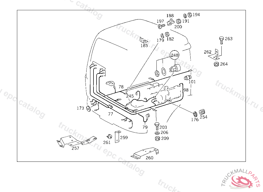 ELECTRIC CABLE FROM MODULE "M" TO ENGINE PLUG CONNECTION, THIS CABLE HARNESS IS A COMPONENT OF FRAME MOUNTED CABLE HARNESS ASSEMBLY AND CAN BE MADE AVAILABLE AS A SPARE ATTENTION: WHEN PLACING ORDERS, PLEASE QUOTE VEHICLE IDENT NO. ONLY IF FRAME MOUNTED CABLE HARNESS IS REQUIRED AS AN ASSEMBLYK 251256