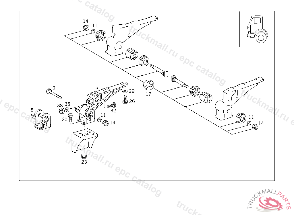 MOUNTING CAB SUSPENSION,FRONT RIGHT, FOR USE WITH SHORT MERCEDES-BENZ CAB5 505580
