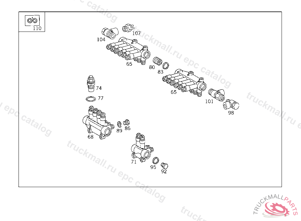 DISTRIBUTOR QUADRUPLE, WITH METERING NIPPLE: BEKA-MAX,0.1 (100 MM3), TO BE ADAPTED DURING ASSEMBLY