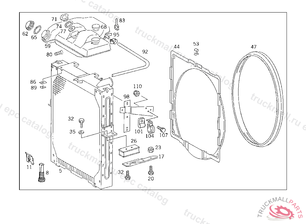 RADIATOR , FIRST EXHAUST STOCK OF OLD PARTS UP TO IDENT NO. 5 906164, Replaced By: A6505010601