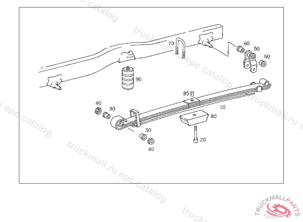 REAR SPRING , TO WHEELBASE 3150 MM ,WITH EXHAUST IN FRONT OF REAR AXLE ,REWORK IF NECESSARY. USE U-BOLT + GUIDE PLATE + FITTED SCREW AS REQUIRED (SEE GROUP 32 ,VARIO) ONLY REPLACEABLE BY PAIRS, Replaced By: A6673203306, +002A6703200175, +004A6673516425