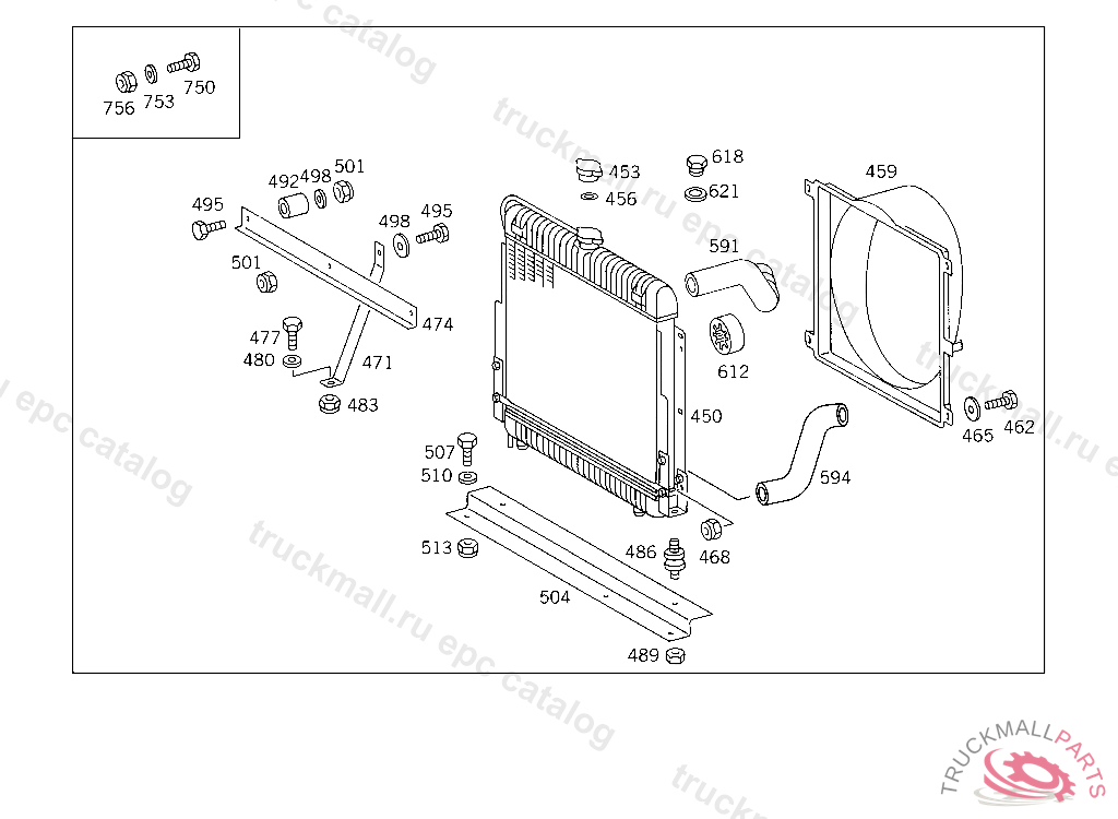 RADIATORBEHR, FROM CHASSIS 611358 EXCEPT FOR 611519,611537 ALSO INSTALLED ON 610763,610832,610834,610848,610863