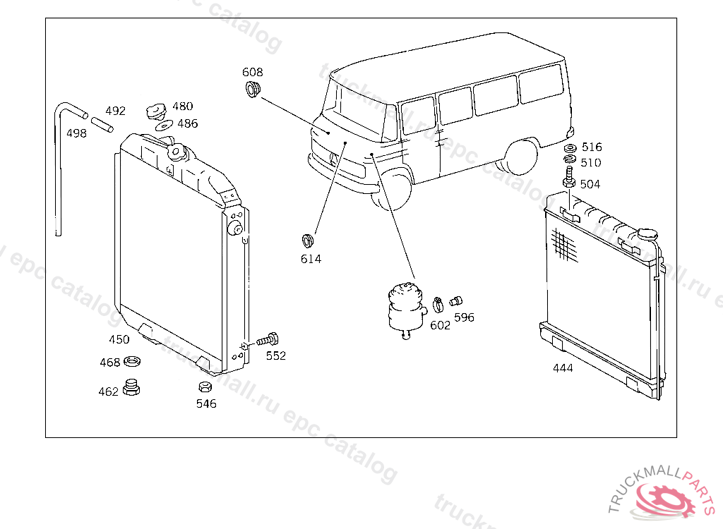 RADIATORBEHR, FROM CHASSIS 611358 EXCEPT FOR 611519,611537 ALSO INSTALLED ON 610763,610832,610834,610848,610863
